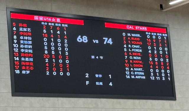 9月4日下午,U16女篮VS美国Cal stars学校的比赛,U16女篮虽然惜败,但李沅珊全场比赛拿到18分4篮板1助攻,中锋孙晗昀拿到20分5篮板,这两人给美国球员带来巨大的挑战。