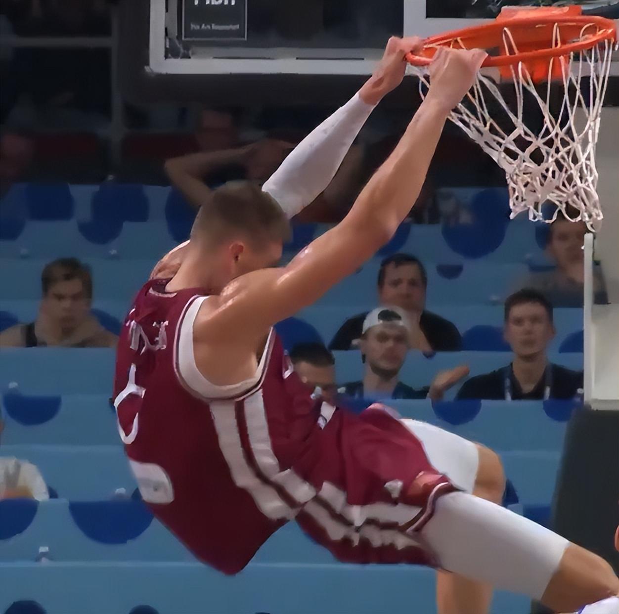 除此之外波尔津吉斯这场比赛的侵略性还非常足,他在篮下接球后完成了一次挂框暴扣,这个球也让全场的球迷惊呼连连。