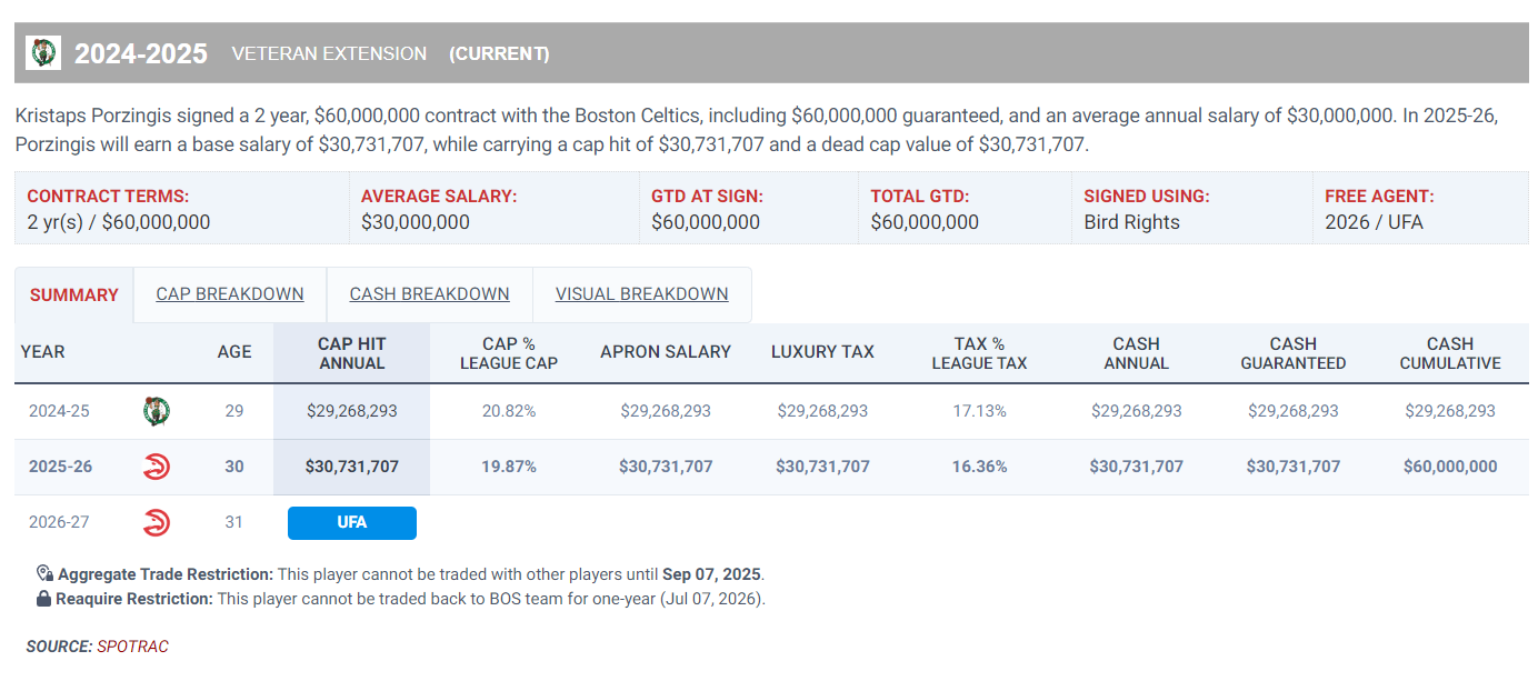 今夏老鹰、篮网、绿凯的三方交易中波神被绿凯送到老鹰,绿凯此举是为了节省奢侈税,老鹰则补强了内线,波神上赛季一直遭遇奇特的伤病困扰,欧洲杯能展现天赋老鹰已经不算亏,关键波神的合同只剩下25-26赛季3073万,这是一份到期合同。